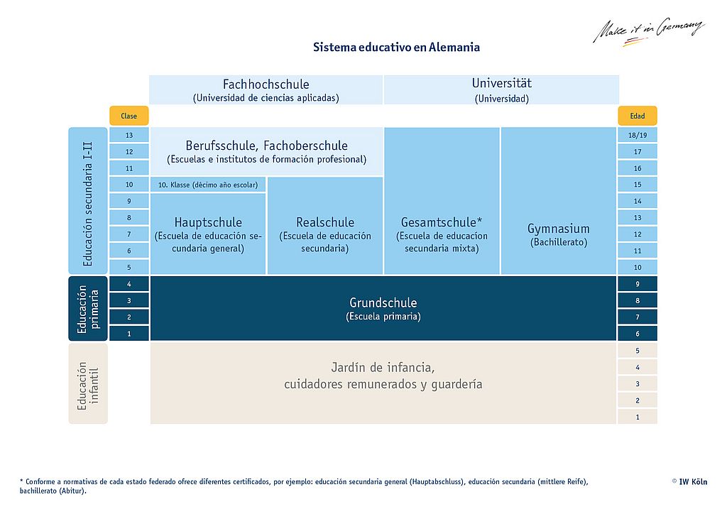 El sistema escolar puede diferir ligeramente entre los distintos Länder. Infórmate en la página del correspondiente ministerio de educación de tu Land para más información: